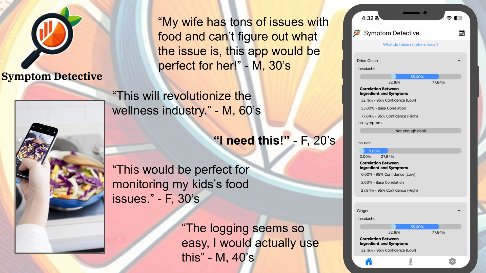 Simply log your daily exposures simply by taking a picture, then the user will receive personalized statistics of any correlations with the symptoms they may be experiencing.